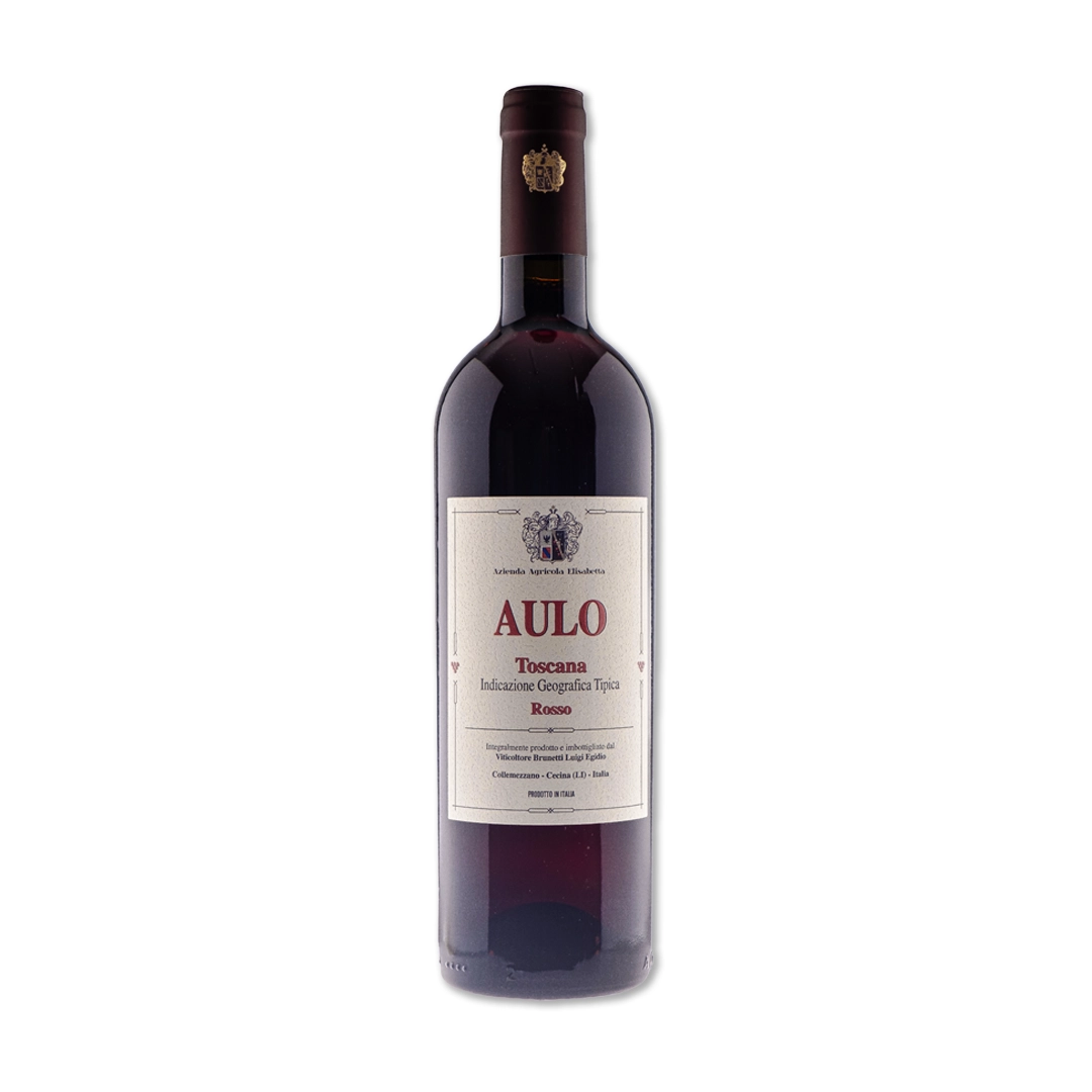Bottiglia di vino rosso Aulo Rosso prodotto dall'azienda agricola Elisabetta a Cecina, Toscana